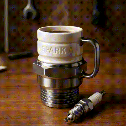 🔧☕ Use this spark plug mug to give yourself a more stylish day with mechanical flair.
